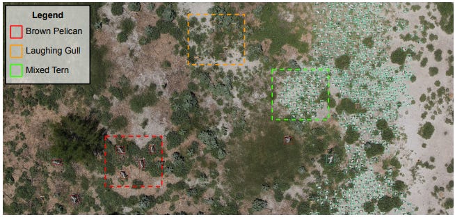 In this paper Detectron2 (an open source deep learning platform from Facebook) is used to detect 16 classes of waterbird species that are commonly found in colonial nesting islands along the Texas coast. The authors report that this is one of the largest number of species detected by a single model for UAV-based waterbird monitoring research. I think this is a good demonstration of how meaningful research can be performed without being a pytorch ninja 🥷