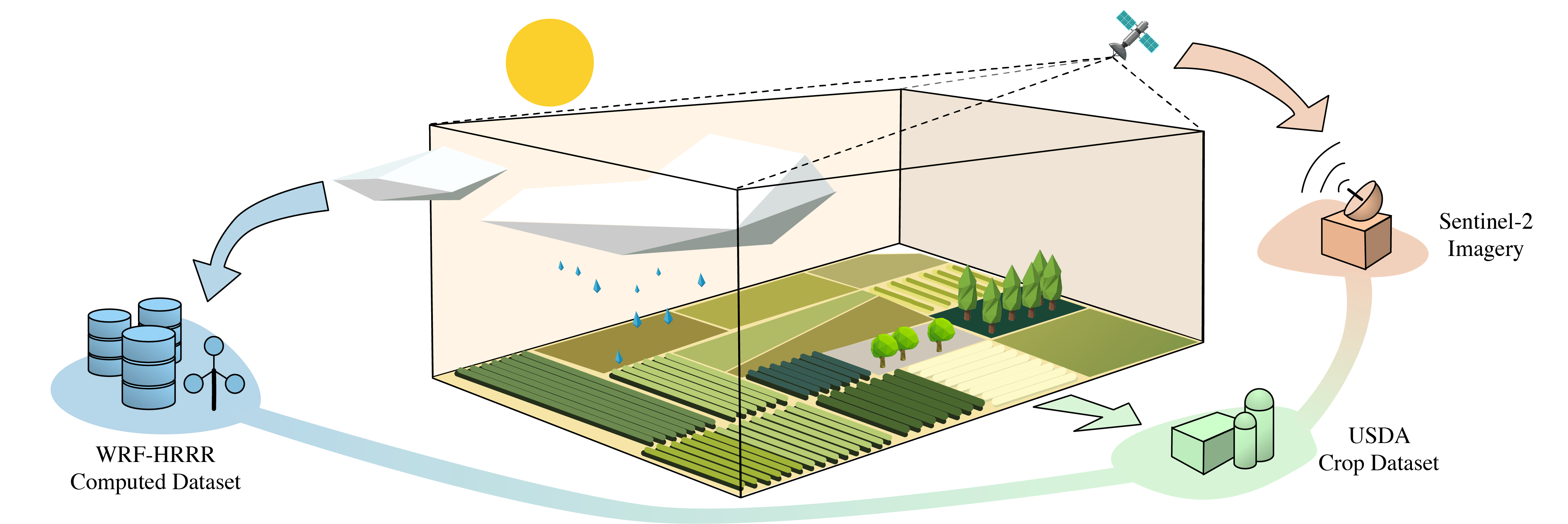 The CropNet dataset is an open, terabyte-sized, and deep learning-ready dataset, specifically targeting climate change-aware crop yield predictions for the contiguous United States continent at the county level. It is composed of three modalities of data, i.e., Sentinel-2 Imagery, WRF-HRRR Computed Dataset, and USDA Crop Dataset, aligned in both the spatial and temporal domains, for over 2200 U.S. counties spanning 6 years (2017-2022).