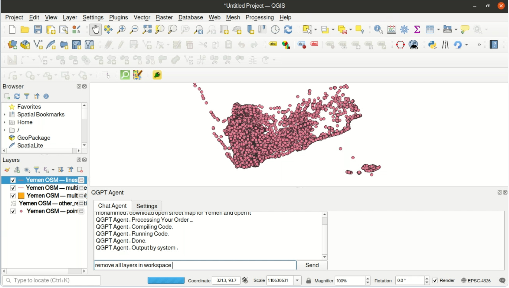 The QGPT Agent is an innovative plugin for QGIS, designed to enhance user interaction with the platform through natural language commands. Leveraging the advanced natural language processing capabilities of the OpenAI GPT model, it streamlines and automates a variety of tasks within QGIS. The trend towards integrating conversational interfaces into geospatial software is gaining momentum, and it's particularly encouraging to observe open-source solutions at the forefront of this movement.